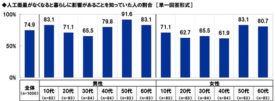 - 「人工衛星がなくなると暮らしに影響があることを知っていた」75%、50代男性では92%