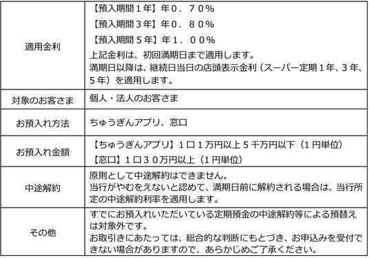 中国銀行(岡山市 頭取 加藤 貞則)では、2026年4月6日(月)より、新店舗開設を記念いたしまして、「西条支店オープン記念定期預金キャンペーン」を実施します。