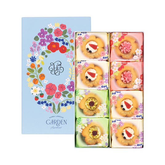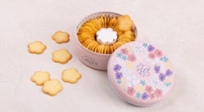 花クッキー缶フランスの伝統菓子ラングドシャのサクサクとした食感を追求しました。風味豊かな発酵バターと卵白をメレンゲに仕立て、繊細な火加減で焼き上げた絶妙な軽やかさが特徴です。