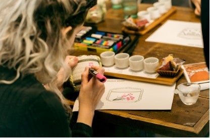 参加者はミニサイズの菰樽に自由にイラストや名前を描き入れて、世界に一つだけのオリジナル作品に仕上げます。完成した菰樽には、テイスティングで気に入った日本酒300mlを詰めてお持ち帰りいただけます。