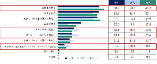 ≪飲用スタイル≫ 炭酸割りが主流、20代では多様な飲み方も定着
