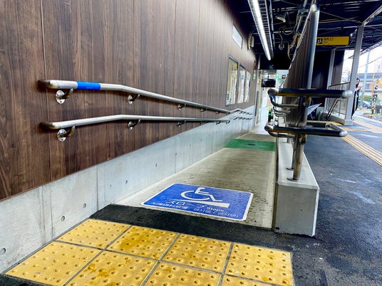 上りホームスロープ、バリアフリートイレ、上下ホームエレベーターを新しく整備し、段差が解消された「バリアフリールート」としてご利用いただけるようになりました。