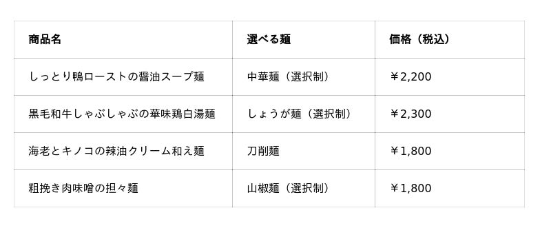 麺は、数々の有名店の麺を手掛けてきたヌードルアーティスト(R)️・橋爪利幸(当社代表取締役)がすべて監修。店名の「CRAFT NOODLES」に込めた“クラフト”とは、英語で「職人技」「手仕事」を意味します。「最高の麺を」をコンセプトに、お客様ご自身でお好みの麺を選び、スープとの組み合わせでお楽しみください。また麺のおいしさを最大限に引き出す麺料理は、ミシュラン獲得レストランはしづめ総料理長の山田英明の監修です。