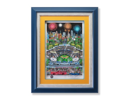 都市のスカイライン、スタジアムの熱狂、祝祭のきらめき。ファジーノ氏は、現代のポップカルチャーを象徴するモチーフを、緻密さと華やかさを兼ね備えた画面へと昇華してきました。作品の前に立つことで、その場にいるような感覚を楽しめるのも大きな魅力です。