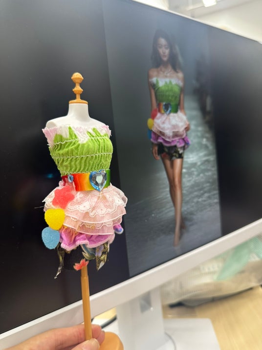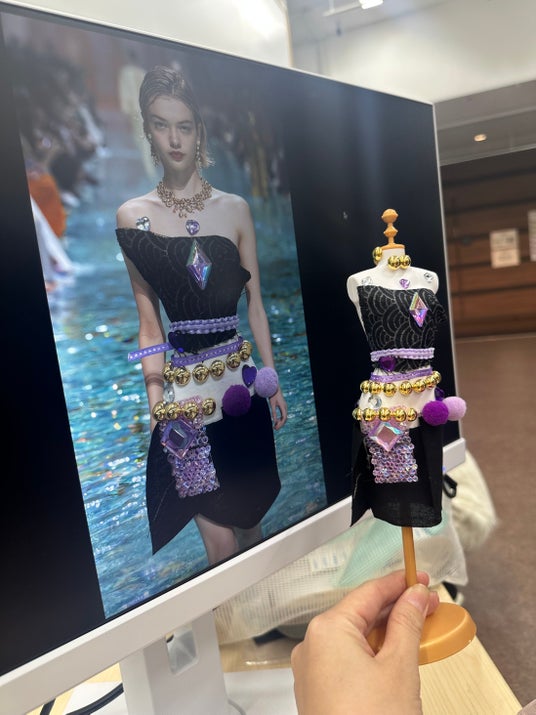 - デジタルとアナログが融合する新しい学び -本プログラムでは、子どもたちがトルソー(立体ボディ)を用いて自由にデザイン制作を行い、その発想や造形をもとに生成AIを活用し、ファッションとして再構築しました。