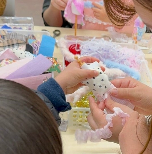 - 当日の様子 -当日は短時間で多くの親子が参加し、子どもたちは既存の枠にとらわれない自由な発想で作品制作に取り組んでいました。