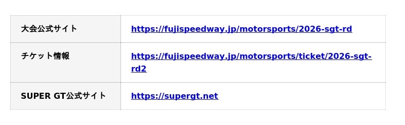 富士スピードウェイは、2026年5月3日(日)・4日(月・祝)に開催する国内最高峰レース「2026 AUTOBACS SUPER GT Round2 FUJI GT 3Hours RACE GW SPECIAL」において、レース・ライブ・グルメ・エンターテインメントが融合した特別イベント「SUPER GT ゴールデンウィークスペシャル 2026」を開催いたします。本イベントは、ゴールデンウィークの中でも“最も熱く、最も盛り上がる2日間”として、