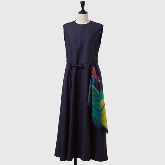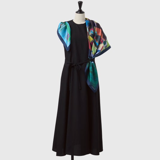 オケージョンシーンで自分だけの個性を放つ、スカーフをまとうワンピース。肩やウエストについたループにスカーフを通すだけで、あなただけのスタイリングが完成します。