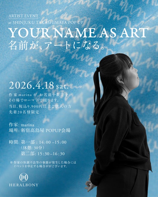 株式会社ヘラルボニー(本社:岩手県盛岡市、代表取締役Co-CEO:松田崇弥・松田文登)が展開するブランド「HERALBONY(ヘラルボニー)」は、2026年4月15日(水)から21日(火)までの7日間、新宿高島屋2階ザ・メインスクエアにてポップアップストアを開催します。