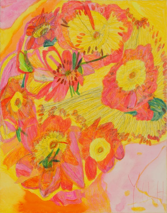 お寿司やゲーム、料理、そして絵を描くことを楽しみ、12歳から創作活動を続けている。なかでも情熱を注いでいるのが、ノートにびっしりと描き連ねる独自の「文字のようなもの」である。それは古代の碑文や宇宙の暗号、未来の言語を連想させるタイポグラフィであり、流れるように走り書かれた筆跡は見る者ごとに異なる解釈を促す。意味を求める人々の想像力の数だけ、新しい物語が紡がれていく。