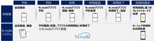 ご利用にあたっては、利用者ご自身で会員登録を行い、「N.mobi アプリ」※10を通じて車両の予約・利用・返却を行います。