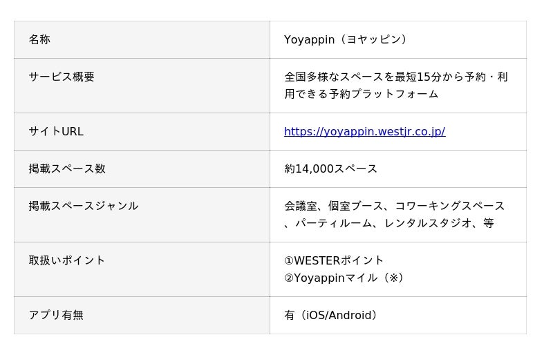 西日本旅客鉄道株式会社(以下、JR西日本)と株式会社スペイシー(以下、スペイシー)は、新スペース・体験予約サービス「Yoyappin(ヨヤッピン)」を2026年3月26日(木)より開始いたしました。サービスリリースを記念して、WESTERポイントやクーポンがもらえるキャンペーンを開催中です。