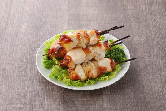 また、冷めても固くならず、胸肉でもパサつかないのが特徴。特に皮と胸肉を交互に刺した名物串焼は岡山でも日に平均4,000本売れる人気商品となっております。
