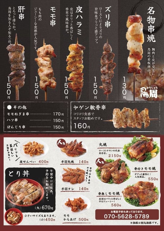 串焼きをーストチキンで人気の『鳥周』が、兵庫県西宮市柳本町に鳥周 西宮広田店店をオープン 全国22店舗目