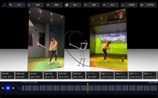 スイング動作を3D解析し、身体の動きまで可視化するモーションキャプチャ「Xビュー」