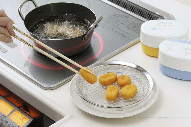 いつもの菜箸で、1つずつ油から揚げていると、最後には少し揚げすぎてしまう……。特に揚げ物は油はねも怖いし、慎重になって時間がかかります。