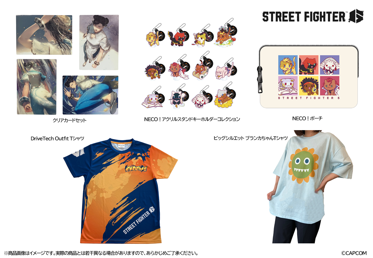 『ストリートファイター6』デザインチームの「ふくもり」が描く春麗イラスト4種の「クリアカードセット」、カプコンのイラストレーター「たみお」が『ストリートファイター6』のキャラクターをネコ化した「NECO!」シリーズの「アクリルスタンドキーホルダーコレクション」「ポーチ」、『ストリートファイター6』の全キャラクターに実装予定の「DriveTech Outfit Tシャツ」と、かわいくてゆったり着れる「ビッグシルエット ブランカちゃんTシャツ」を予約中! お見逃しなく!
