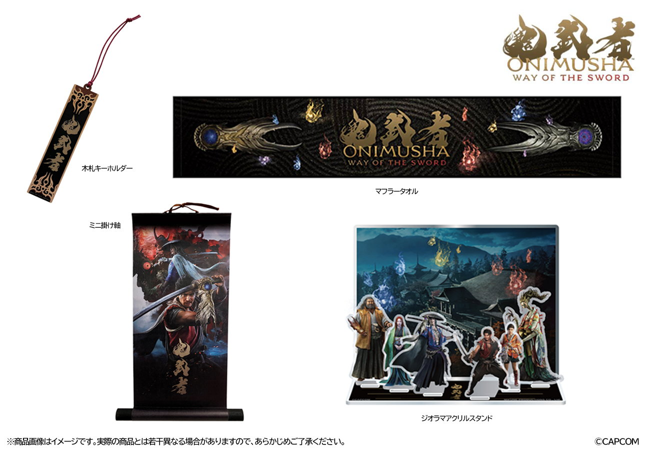 待望のシリーズ最新作『鬼武者 Way of the Sword』から「木札キーホルダー」「ジオラマアクリルスタンド」「ミニ掛け軸」「マフラータオル」を予約中! それぞれタイトルロゴやキャラクタービジュアルなどをモチーフとした力強い商品デザインとなっております。ぜひご予約を!