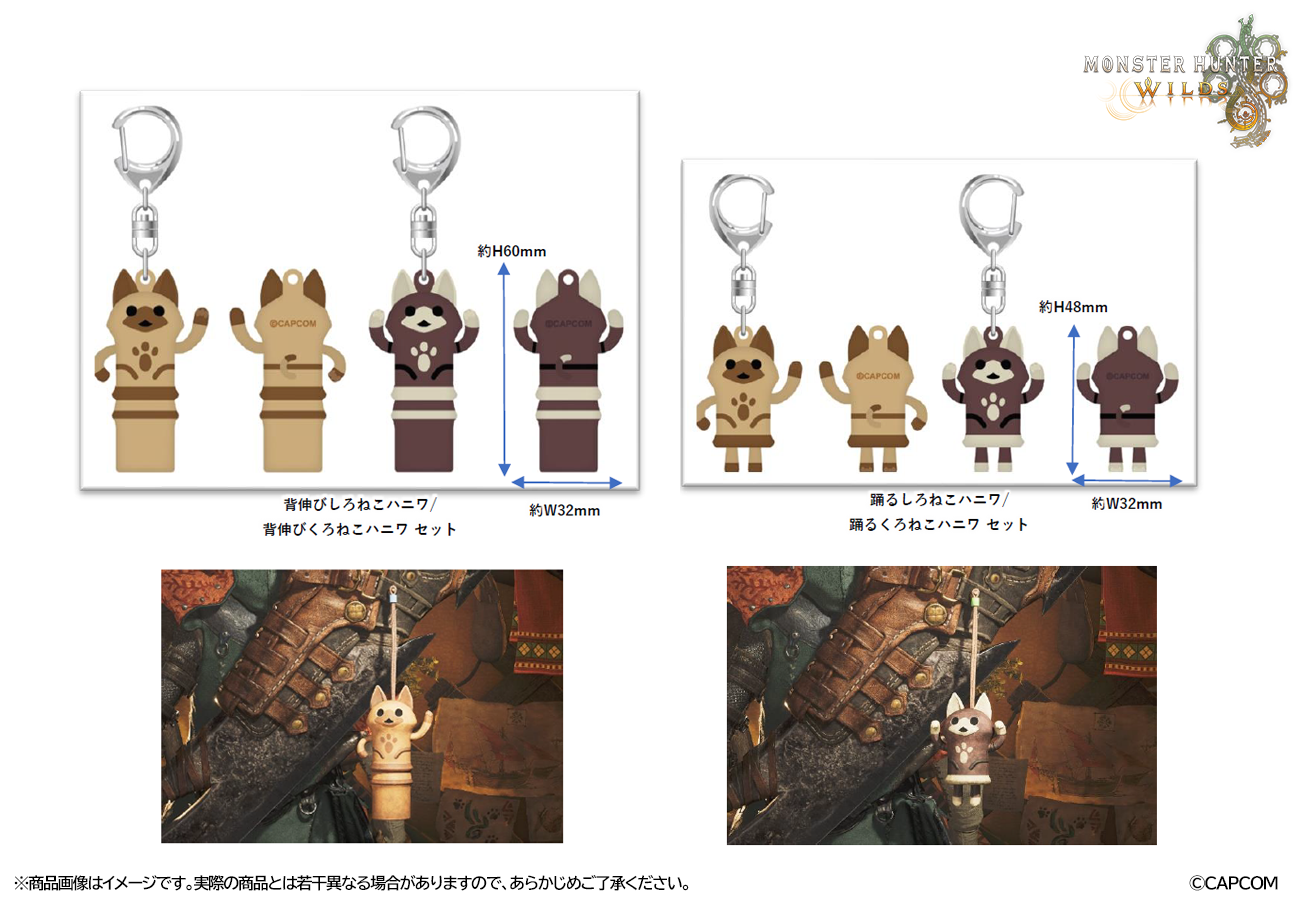 モンスターハンターワイルズ ラバーキーホルダー 踊るしろねこハニワ/踊るくろねこハニワ セット