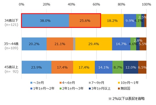 - 〈購入検討期間〉「半年以内」と回答した34歳以下は6割超え