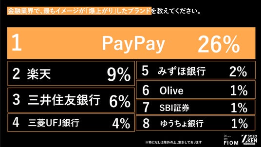 1位『PayPay』(イメージが良くなった:43% / 最も爆上がりした:26%)