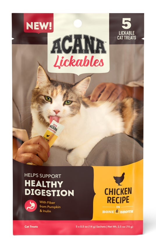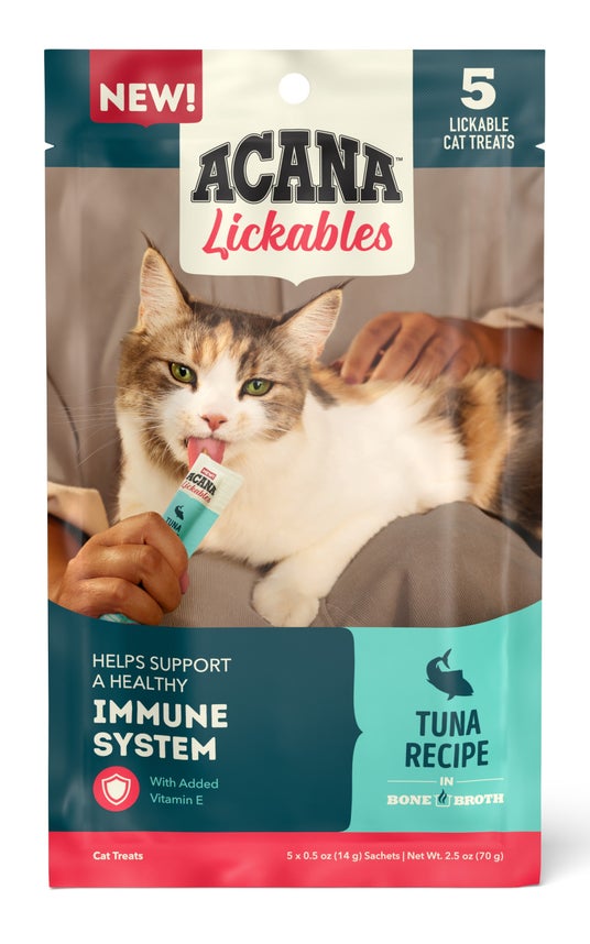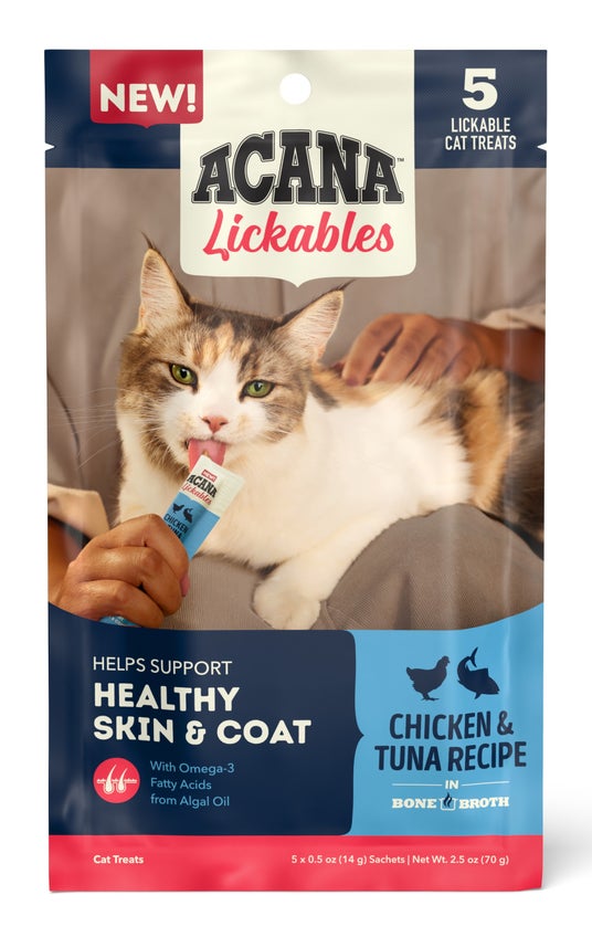 ●商品名:ACANAチャンク イン ブロス、ACANAリッカブル●カテゴリー:猫用ウェットフード(総合栄養食)、猫用トリーツ