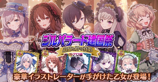 11周年記念イベント第一弾として、「ラナン」「カトレア」「スフレ」「プルメリア」「ロザリー」の5乙女をメインとしたイベント『ジルバラード建国祭 追憶と絆の真影 乙女編』を開催中です。