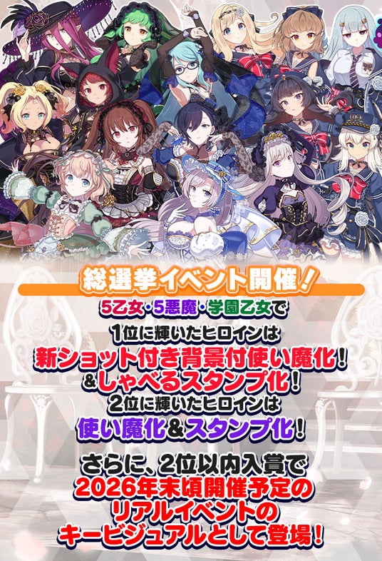 11周年記念イベントでは、5乙女・5悪魔・学園乙女それぞれ総選挙を実施!