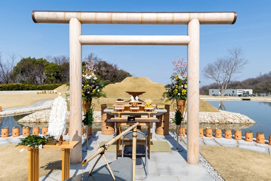 今回の御霊祭で最も象徴的だったのは、神道の聖域である鳥居の前で、仏教の僧侶が恭しく玉串を捧げられた瞬間です。「前方後円墳」という日本古来の形を象徴とする場所だからこそ実現したこの光景は、宗派の垣根を超え、大切な人を偲ぶ純粋な「祈り」の場として、参列者の心に深く刻まれました。