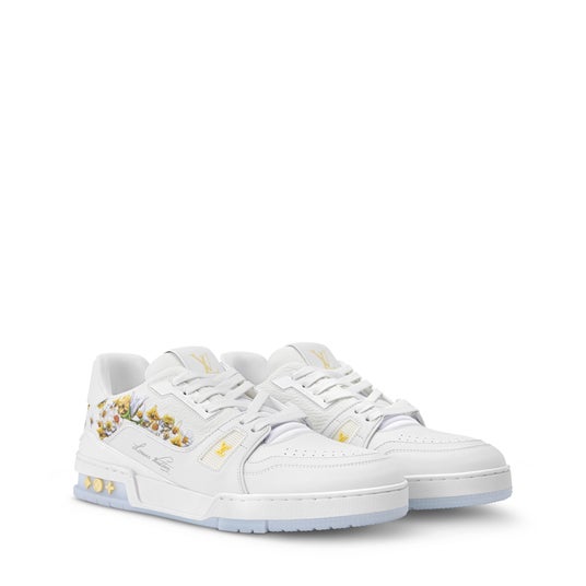 2026春コレクションならではのフローラル・モチーフが刺繍であしらわれた、しなやかなグレインレザーの「LV トレイナー スニーカー」。バスケットボールから着想を得たこのモデルのアウトソールには、3つのモノグラム・フラワーが新鮮なパステルカラーで彩られ、上品な印象を演出します。サイドには手書き風の「Louis Vuitton」シグネチャーの刺繍をプラス。