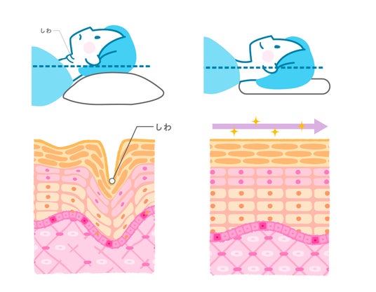枕が合わないと、寝ている間に「深く定着するシワ」ができてしまいます。 何度も同じ場所が折れ曲がることで、服のシワと同じように、皮膚に深くシワが刻まれていきます。