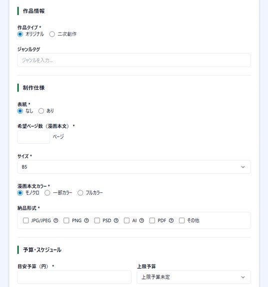 依頼内容も事前に整理されているため、漫画制作が初めての方でも安心してご利用いただけます。