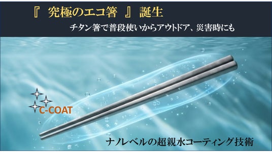 今回は、チタン箸に超親水コーティングを施すことで少しの水だけで油汚れが落ちるという画期的なアイテムを開発しました。能登半島地震の数か月に及ぶ断水を教訓にしています。