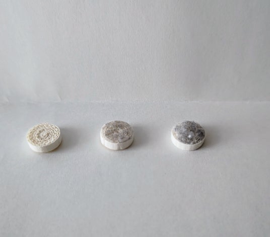 中央は1日の呼吸でとれた異物。右は3日。
