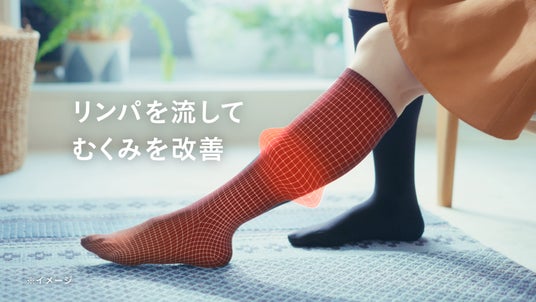 一般医療機器の「スリムウォークEX+ メディカルリンパシリーズ」は、着用部位のリンパの流れや血行を促進し、脚のむくみを改善します。中でも「メディカルリンパハイソックス」は、つらいむくみにお悩みの方にご好評をいただき、2016年4月の発売から10年目を迎えました。