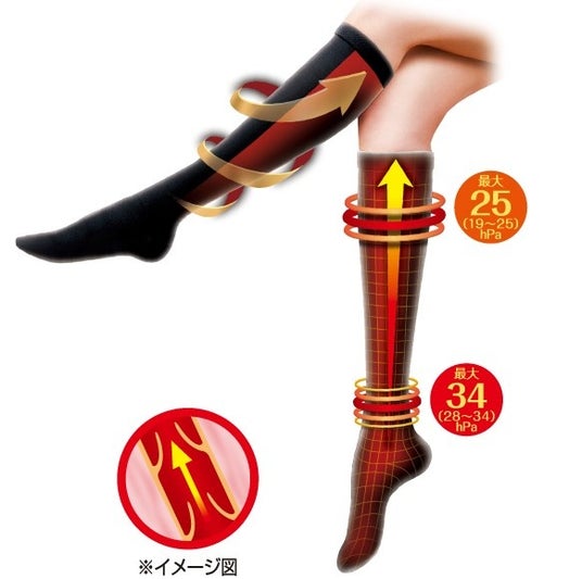 (足首最大34hPa、ふくらはぎ最大25hPa)