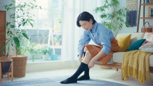 新CMでは、メディカルリンパハイソックスを履いてむくみのない毎日を過ごす女性の日常を描いています。気持ちの良い朝の風景に、自然となじんでいるメディカルリンパハイソックス。段階圧力設計で、リンパを流してくれる。むくみが和らいで、毎日が前向きに循環していく。女性は今日もメディカルリンパハイソックスを履いて、軽やかな足取りで出かけていきます。