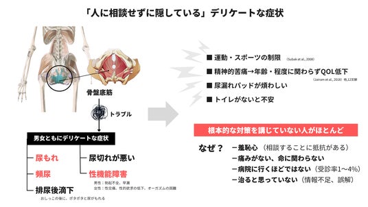 しかし現実には、「命に関わらない」「痛くない・かゆくないから大したことではない」「年齢のせいだから仕方がない」と見過ごされ、さらに人に相談しづらいという理由から、多くの人がひとりで抱え込んでいます。