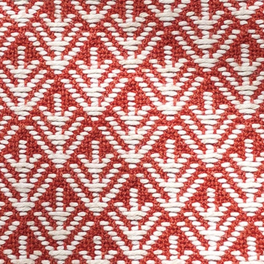 コッテの文様は、こぎん刺し作家の高木裕子氏が考案した「松笠」をモチーフにしています。こぎん刺しは青森県津軽地方に伝わる伝統的な刺し子技法で、麻布を丈夫にし、暖かさを保つための刺繍として誕生しました。北欧の雰囲気が漂う松笠文様には、自然の豊かさとどこか懐かしい安らぎが感じられます。高木氏は、伝統を踏まえながら独自の技法とデザインを確立し「こぎん刺し木曜会」を主宰。作品や教室を通して魅力を現代に発言する、こぎん刺しの第一人者です。