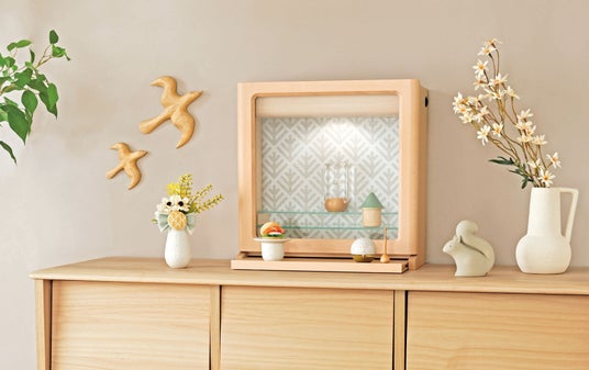 現代仏壇は、業界初のモダン仏壇ブランドとして1991年に発表以来、インテリアに調和する上質な祈りの空間を提案してきました。2026年の最新作では、自然とのつながりやクラフトの温かみで故人への想いを彩るコンセプトを込め、全国のものづくりの匠と協働して製作したラインナップです。