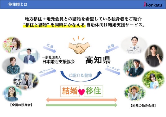 一般社団法人日本婚活支援協会(所在地:東京都港区、代表理事:後藤幸喜)は、地方創生を目的とした結婚支援プロジェクト「移住婚」において、高知県庁 元気な未来創造課と連携し、令和8年4月1日より高知県内34市町村での受け入れを開始いたします。