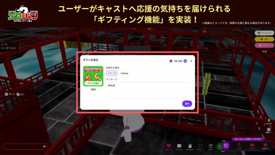 ユーザーがキャストへ応援の気持ちを届けられる「ギフティング機能」を実装。