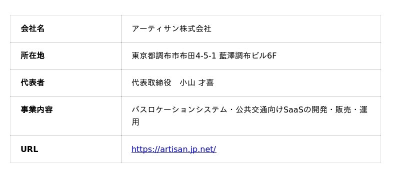 アーティサン株式会社(本社:東京都調布市、代表取締役:小山 才喜)は、長野県公共交通活性化協議会から受託した「長野県バスロケーションシステム導入業務」において、バス運行情報リアルタイム配信サービス『バス予報』を令和8年3月30日(月)より長野地域の対象バス路線にて開始いたします。