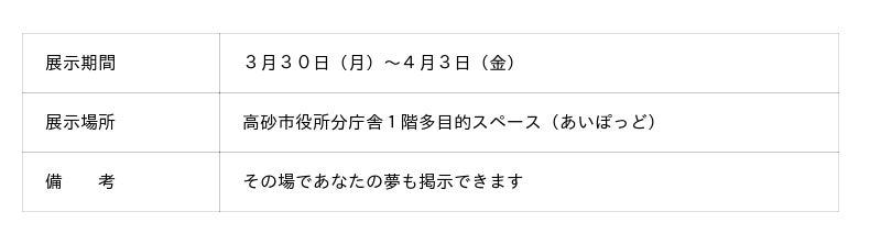 総合計画で掲げる「楽しく、つながり合い、活躍するまち」の実現には、市民の皆様の「夢」の力が欠かせません。「夢を言葉にする」ことは、それを実現するための勇気ある第一歩になります。 高砂市はその挑戦を支える伴走者であり、高砂市というまち自体が、誰もがその人らしく輝き、夢を語ることが当たり前になる「夢の発信地」となることを本気で目指しています。2030年、高砂市はSDGsの精神に基づき、誰一人取り残すことなく、すべての世代が希望を持って共に歩む、笑顔あふれる場所になります。今日語るこの夢は、決して嘘で終わらせるものではありません。いつか必ず満開の「現実」として咲き誇るよう、私たちは市民の皆様と共に、情熱を込めて一歩ずつ進み続けることをここに宣言します。