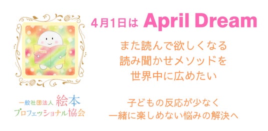 当社は、4月1日を夢を発信する日にしようとするApril Dreamに賛同しています。このプレスリリースは、一般社団法人絵本プロフェッショナル協会(R)の夢です。