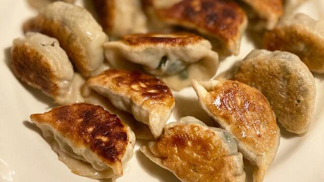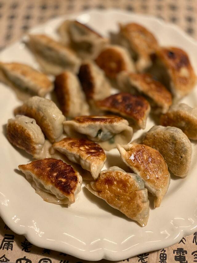 焼きニラ餃子(具はシンプルに、豚バラ、ネギ、ニラ)焼き餃子ってやつはやっぱり日本人の心に響く美味しさ。
