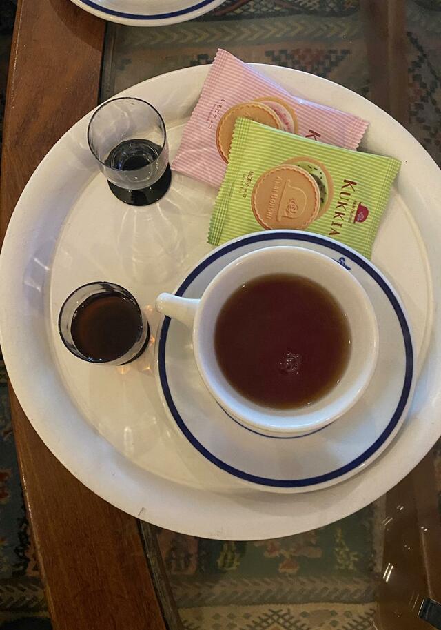 不思議な光。映画の中を歩いているみたいだ。紅茶、今日の元気、プロテイン、