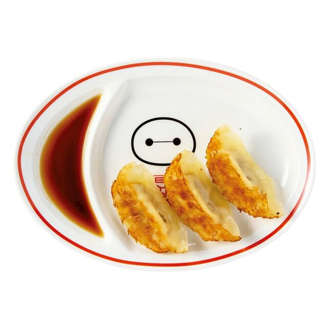 餃子とたれを分ける仕切りが便利な「餃子皿」に、食べ終わるとベイマックスのお顔が出てくる「チャーハン皿」、印鑑風のロゴがおしゃれな「レンゲ」と、前後の大きなベイマックスの顔が印象的な「ラーメン鉢」の4種が展開しています。