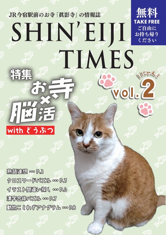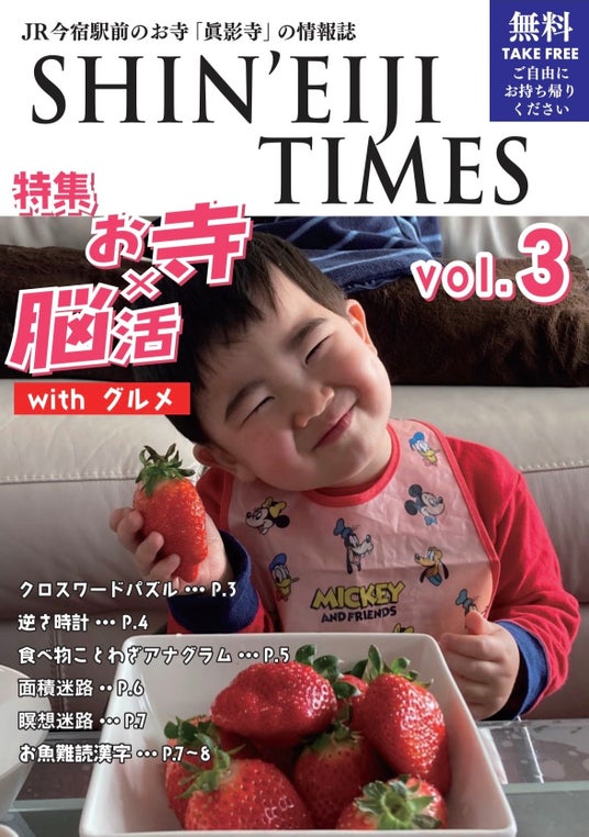 独居世帯が増える現代、最大の不安は「健康の喪失」です。老いによる身体機能の低下は避けられませんが、その速度を緩やかにし、前向きに暮らすお手伝いをしたい。 そんな想いから、眞影寺では脳機能に着目したフリーペーパー「SHIN’EIJI TIMES」を発行しています。脳を活性化するクイズや、心を整えるコラムを掲載。創刊から3年、地域の方々に支えられ、本年で3冊目を迎えることができました。