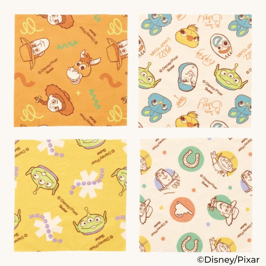 「ウッディ」や「バズ・ライトイヤー」、「エイリアン」などおなじみの仲間たちが勢揃いしたポップなデザイン。
